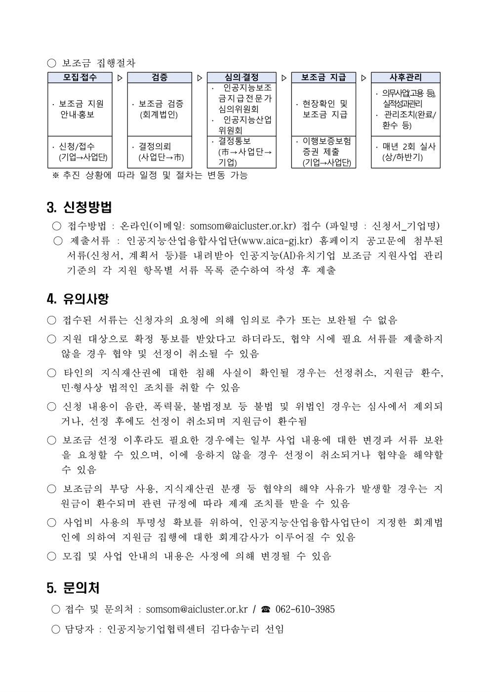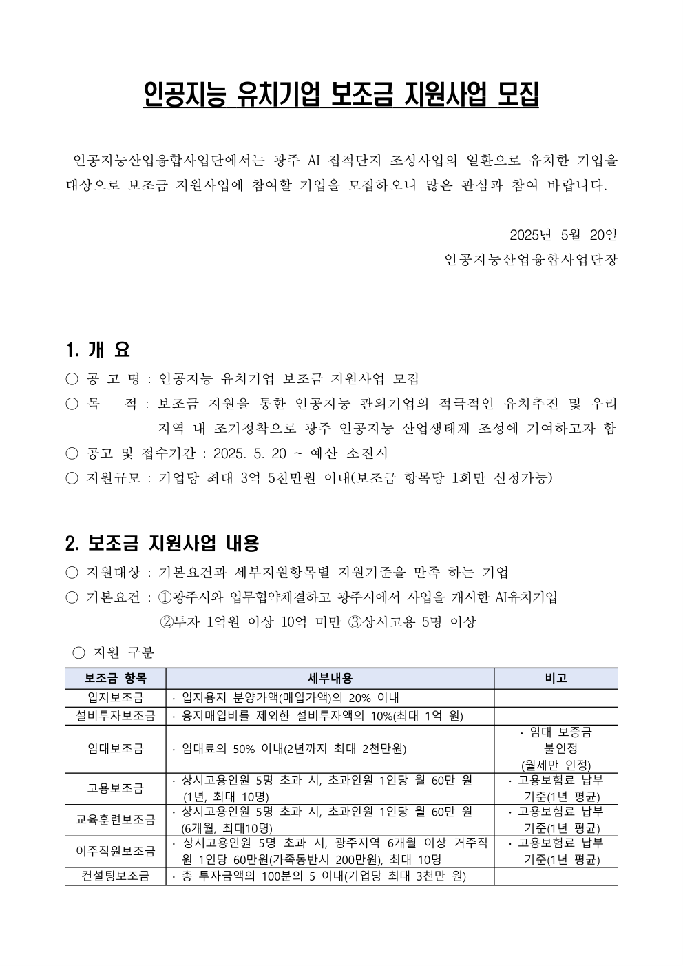경영 [광주] 인공지능 유치기업 보조금 지원사업 모집 공고