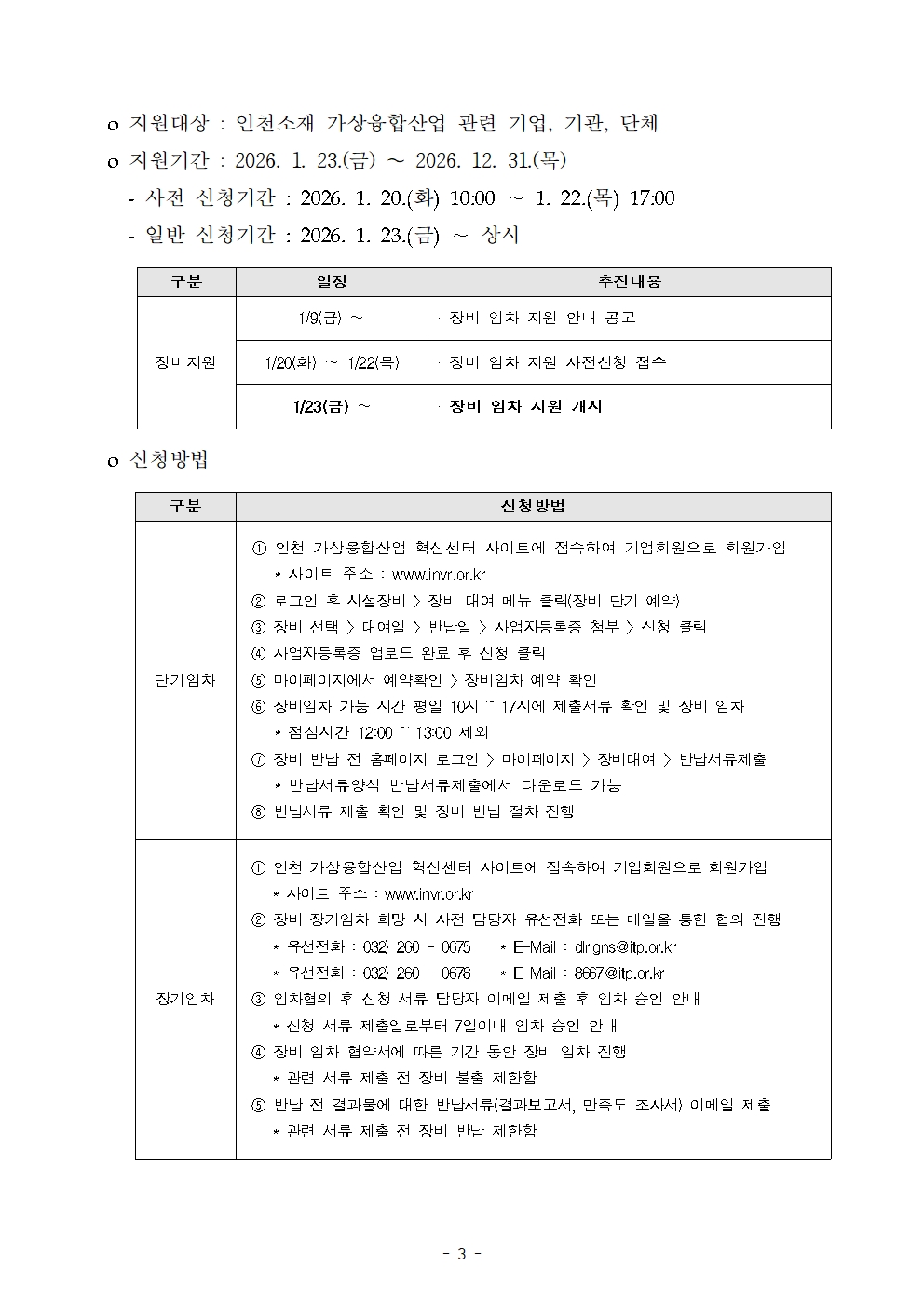 [인천] 2026년 가상융합산업 콘텐츠 제작 장비 임차지원 공고(인천 가상융합산업 혁신센터)