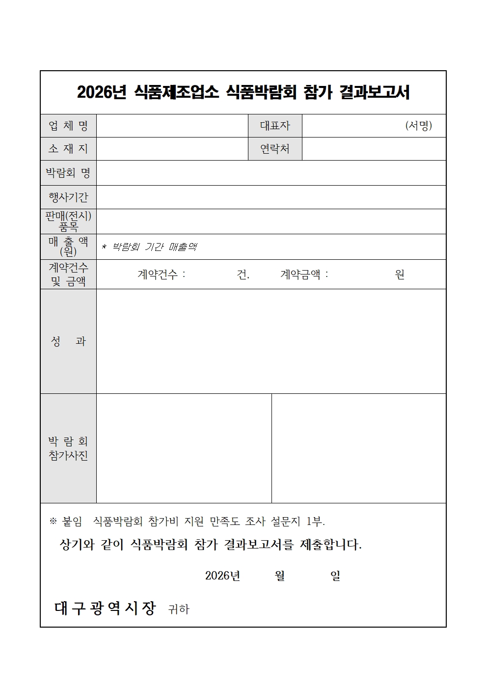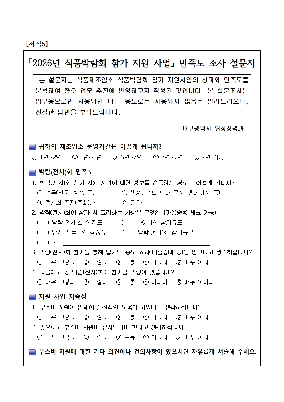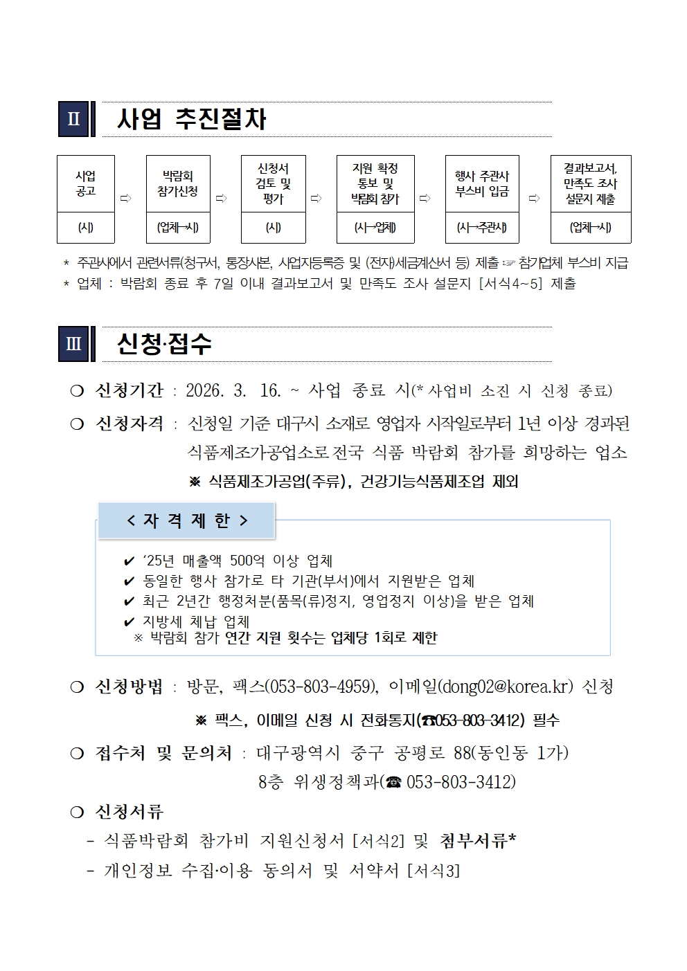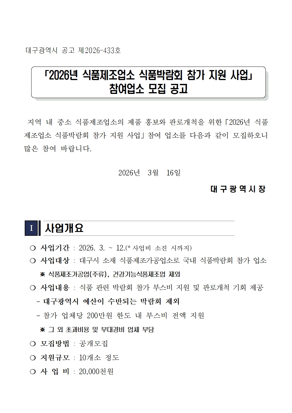 내수 [대구] 2026년 식품제조업소 식품박람회 참가 지원 사업 참여업소 모집 공고