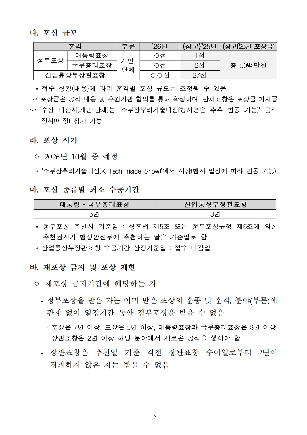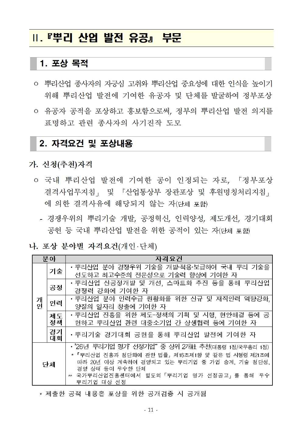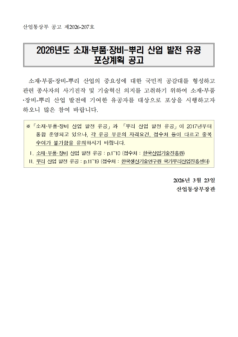 내수 2026년 소재ㆍ부품ㆍ장비-뿌리 산업 발전 유공 포상계획 공고