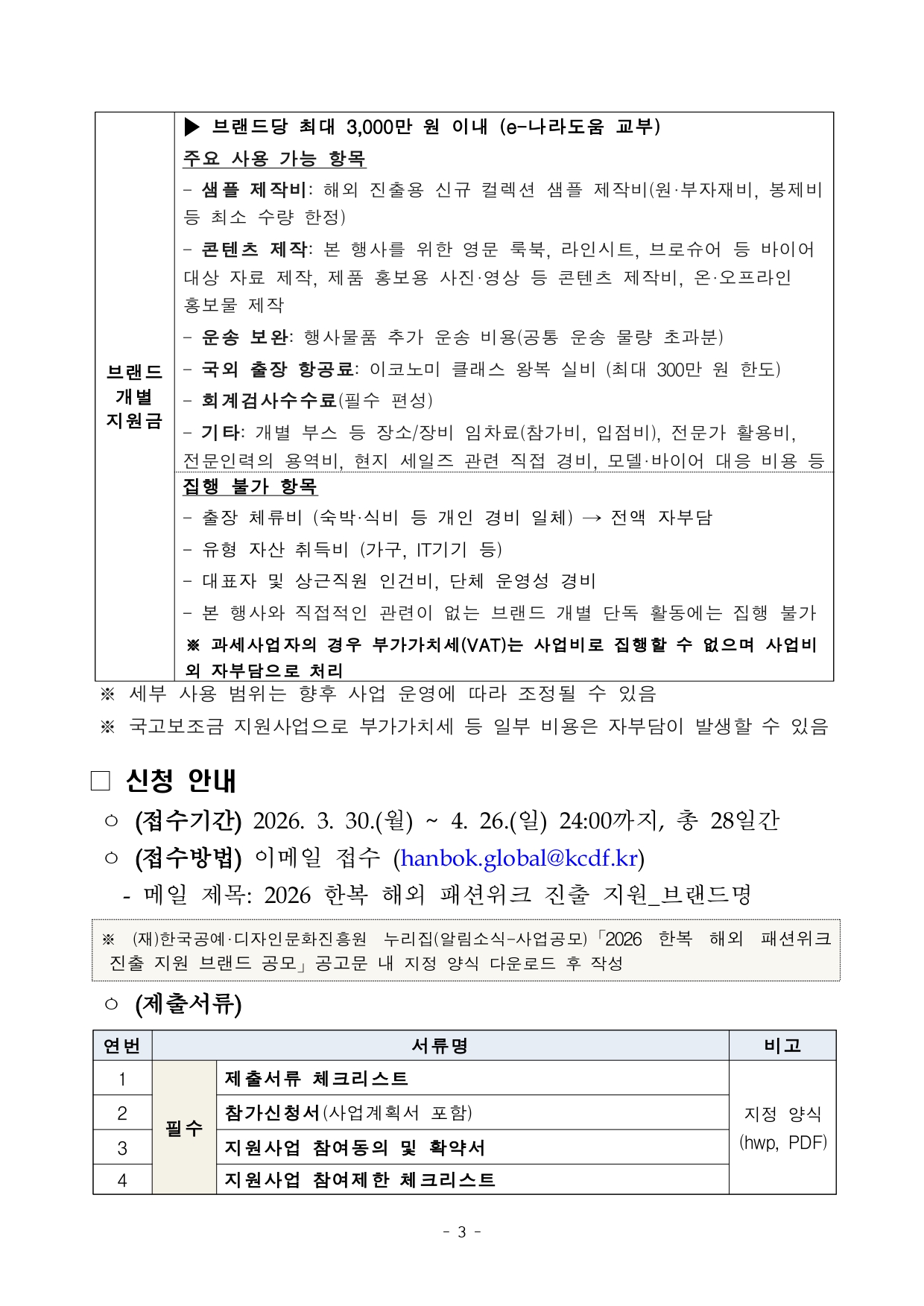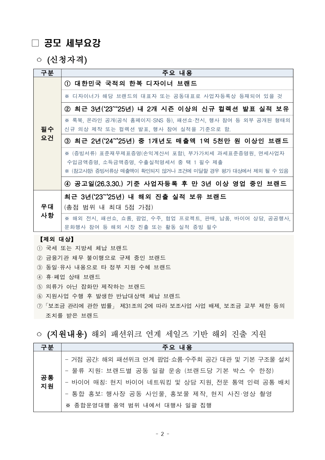 2026년 한복 해외 패션위크 진출 지원 브랜드 공고
