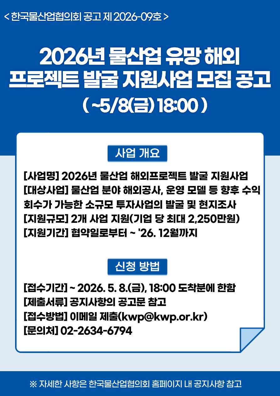 2026년 물산업 유망 해외프로젝트 발굴 지원사업 모집 공고