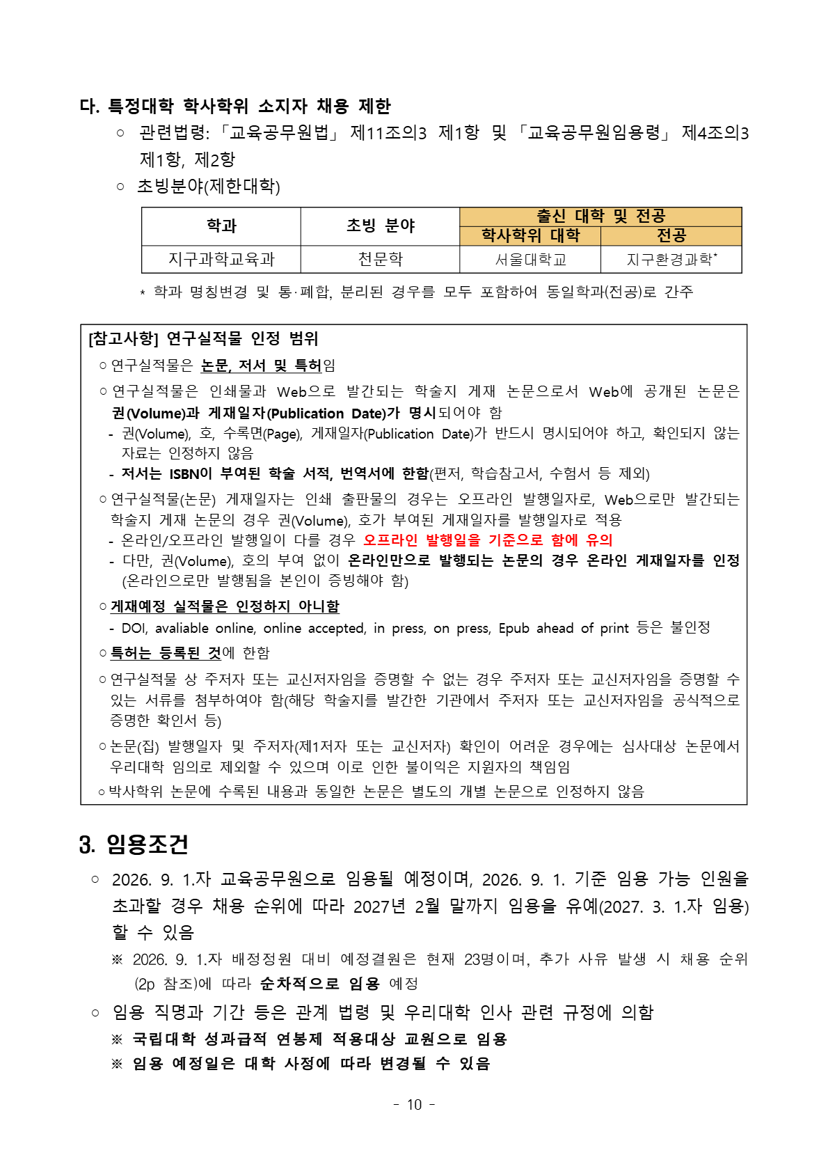 충북대학교 2026학년도 2학기 전임교원 초빙