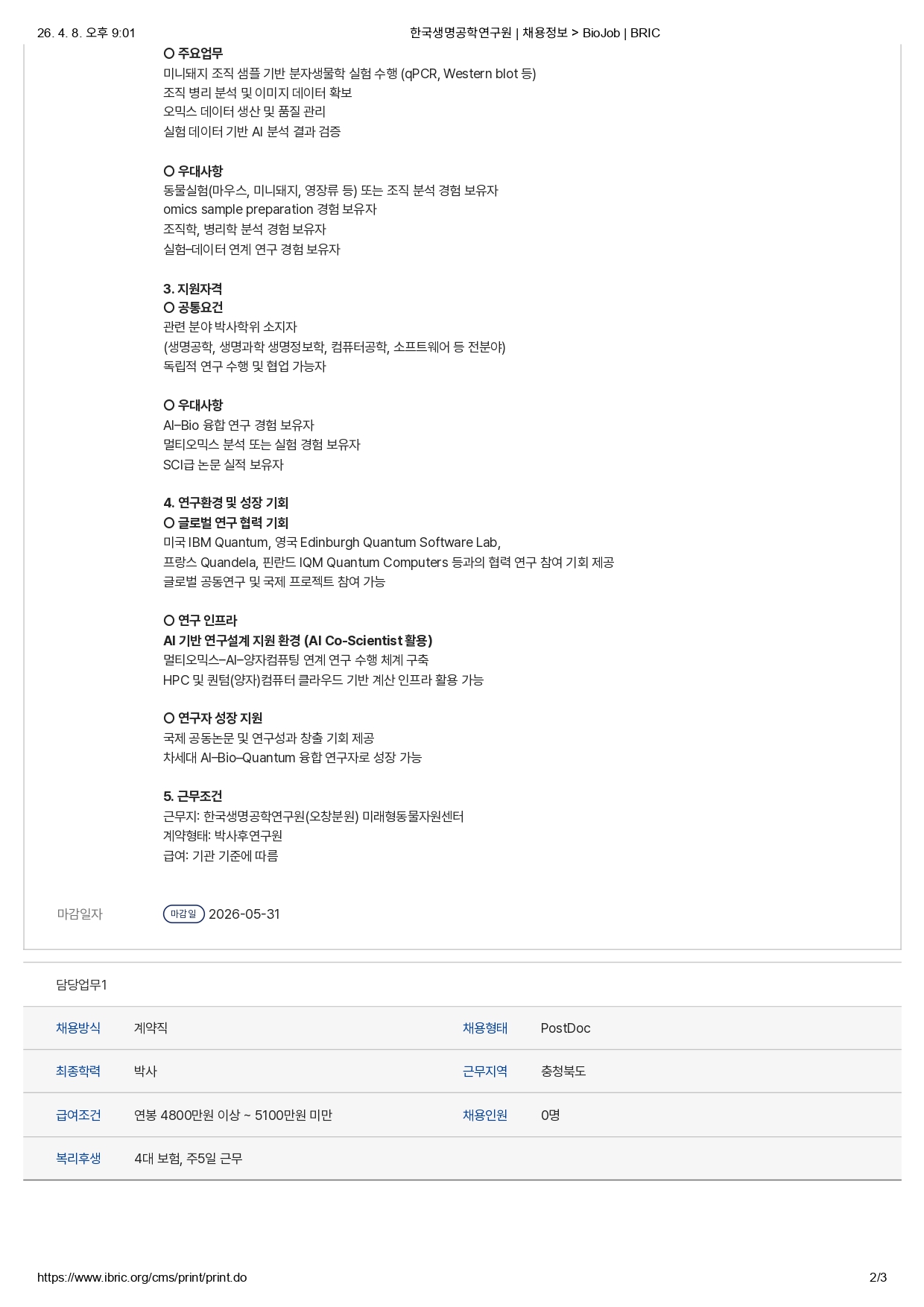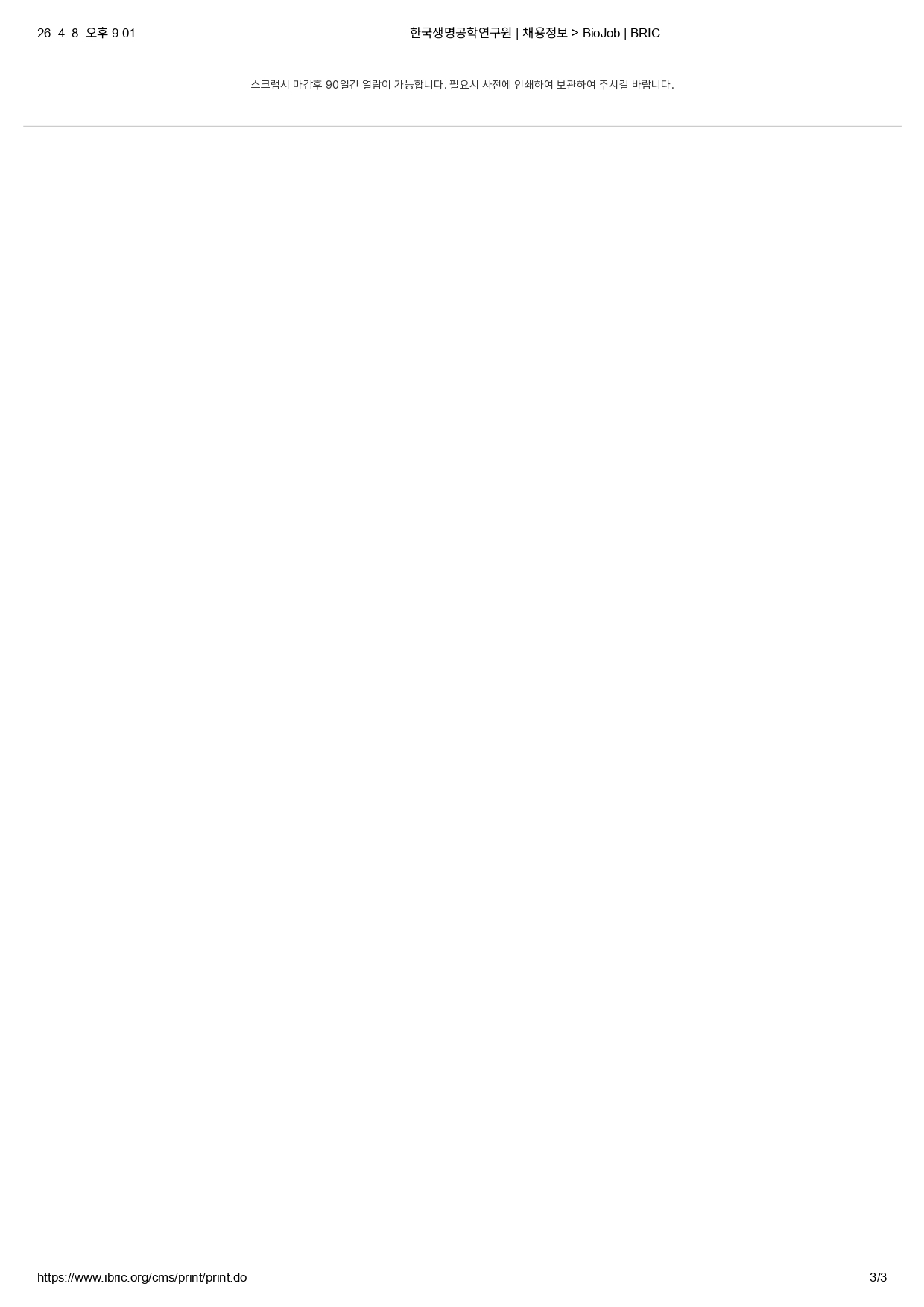 채용정보는 공고 마감 1년 후 부터는 열람이 제한되니 공고내용이 필요한 회원은 사전에 출력 바랍니다.
