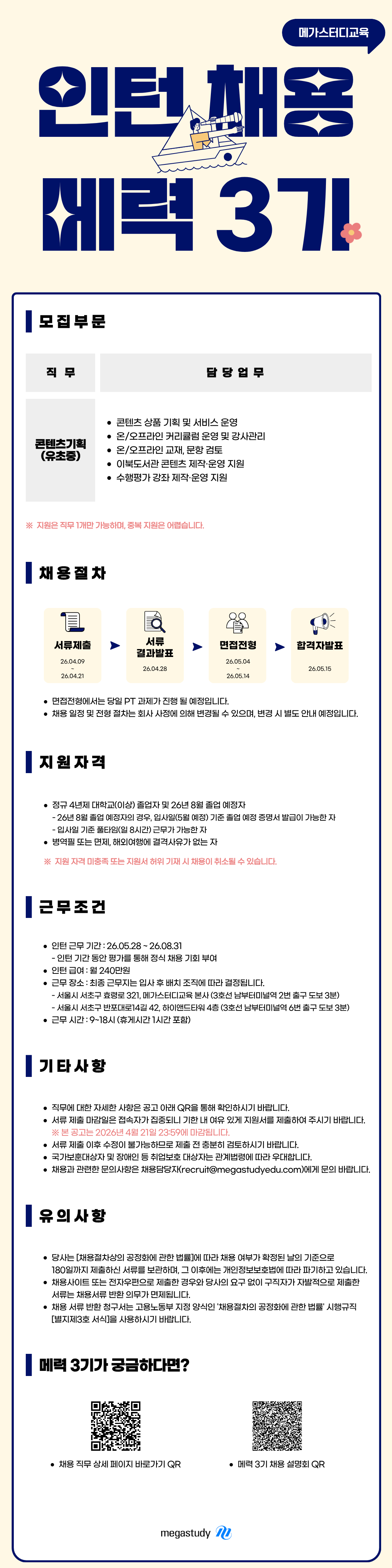 [메력3기] 콘텐츠기획(유초중) 인턴 채용