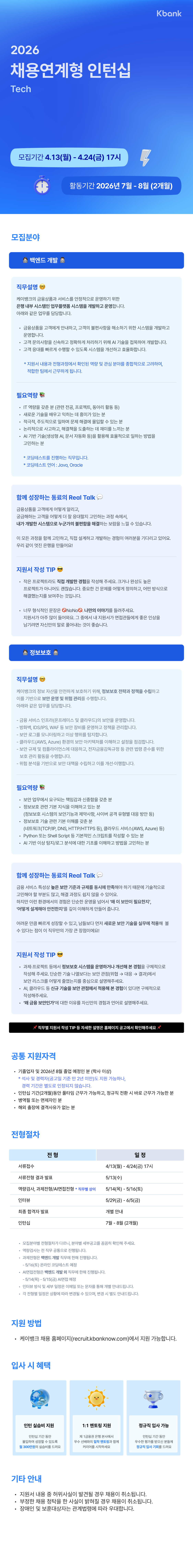 | - 채용연계형 인턴십 | -<부문별 세부사항 공고 참조> | -<부문별 세부사항 공고 참조> | 0명 |