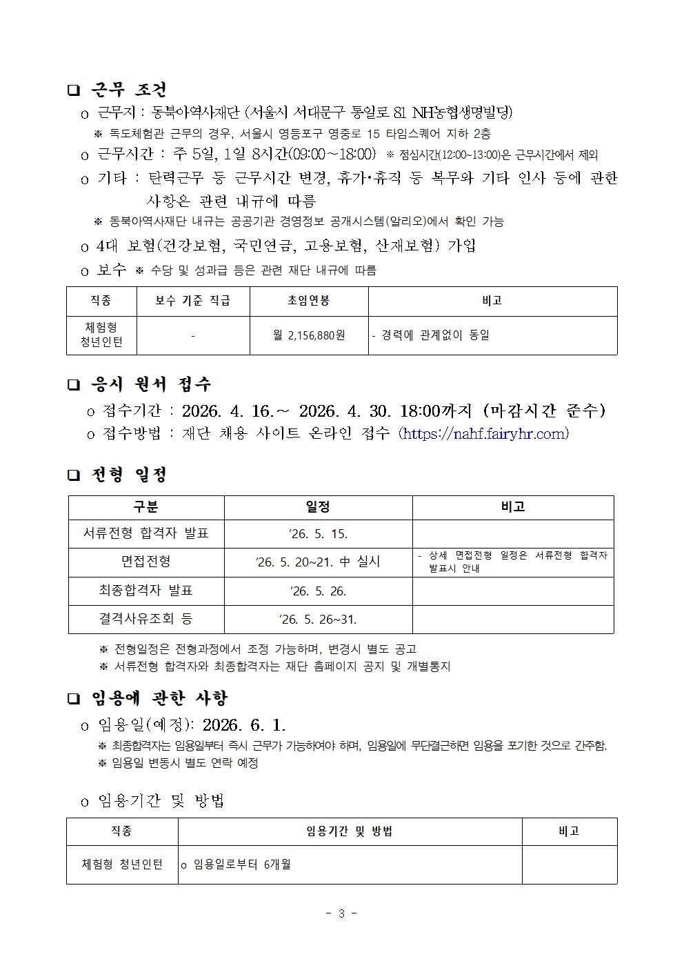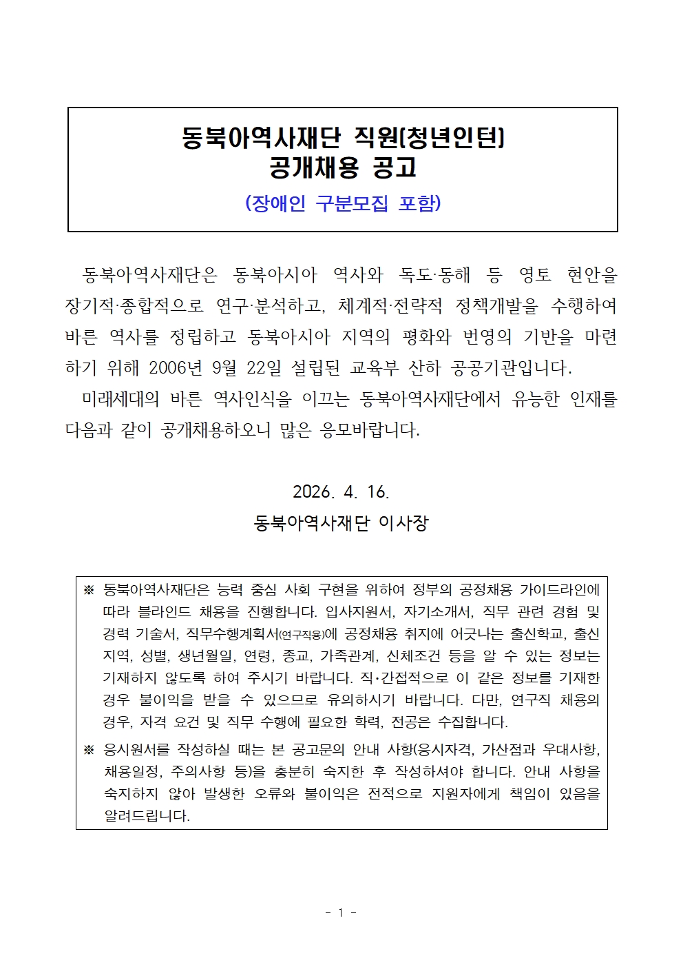 청년인턴 공개채용 (장애인 구분모집 포함)