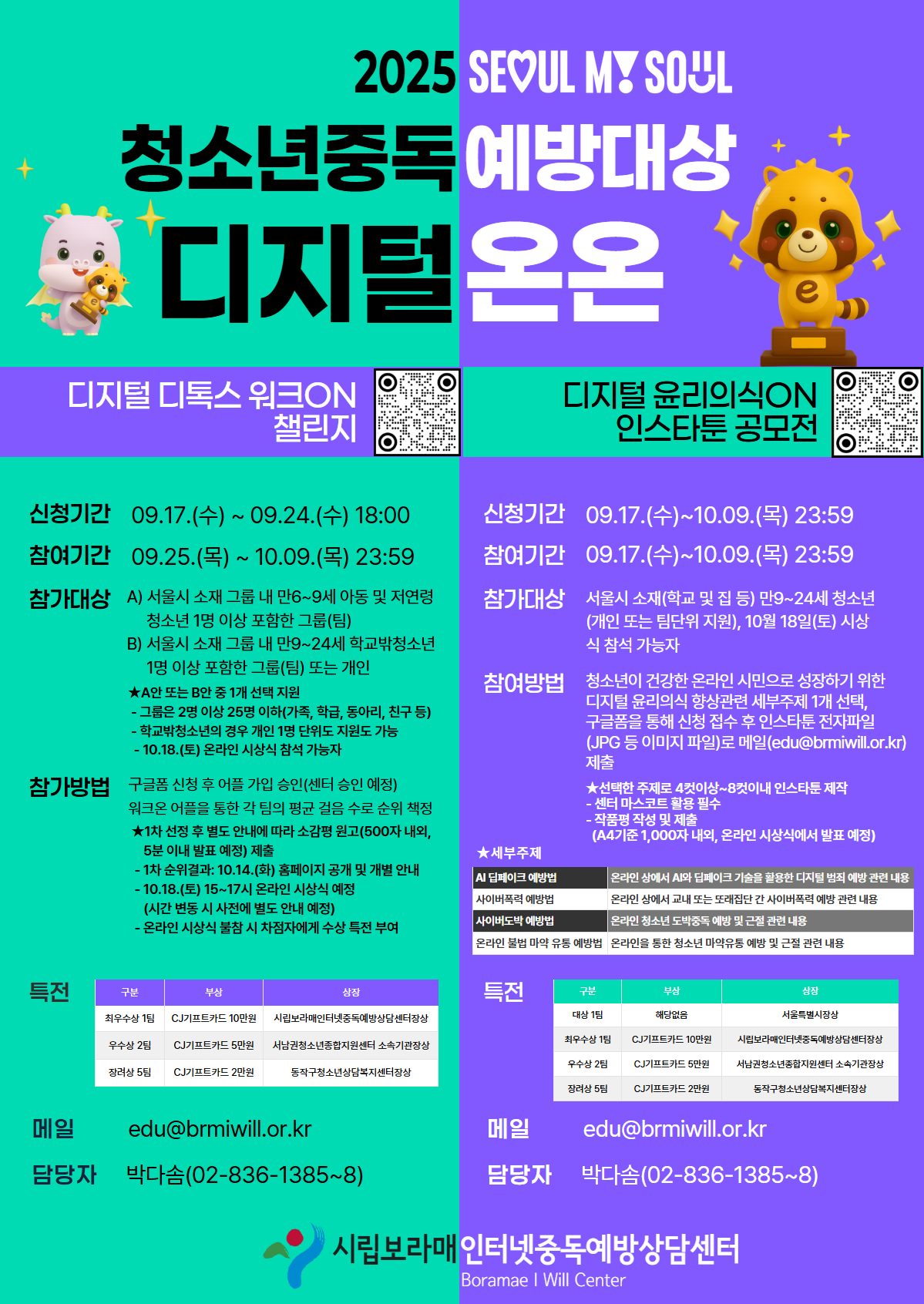 2025 디지털 온온(디지털디톡스워크ON 걷기 챌린지/디지털윤리의식ON 인스타툰 공모전) 안내(서울시장상 등 수상 특전 제공)