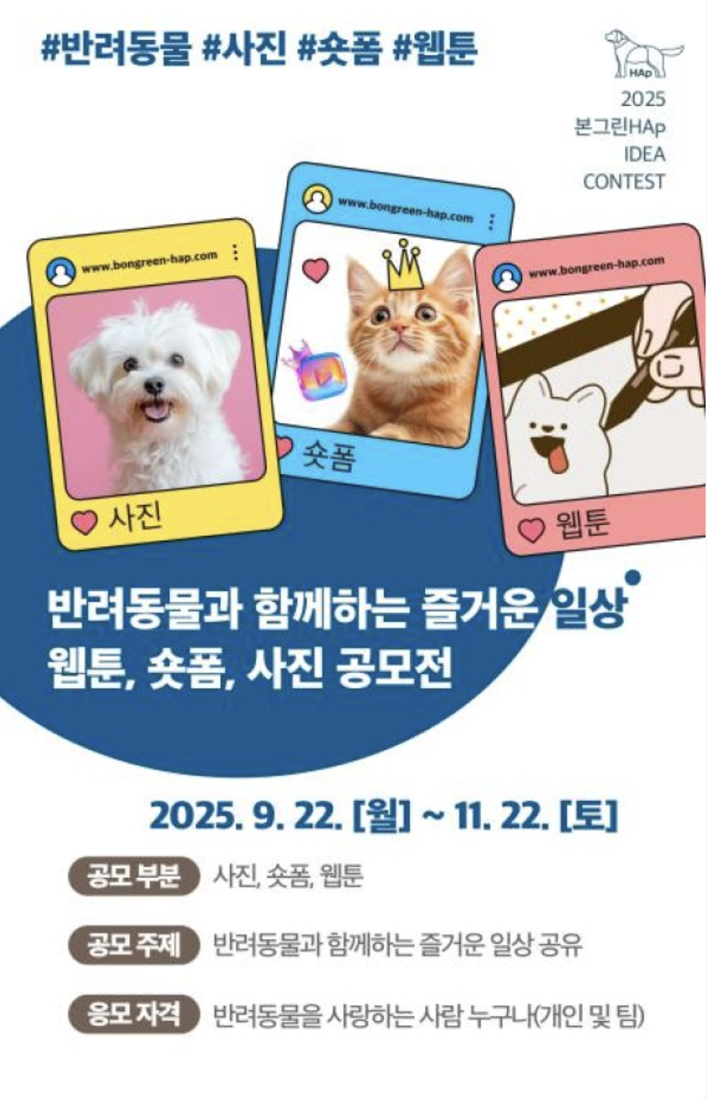 본그린HAp 강아지 웹툰·숏폼·사진 공모전 <반려동물과 함께하는 즐거운 일상>