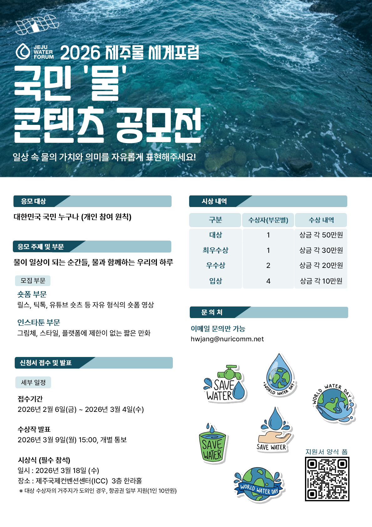 2026 제주물 세계포럼 국민 '물' 콘텐츠 공모전