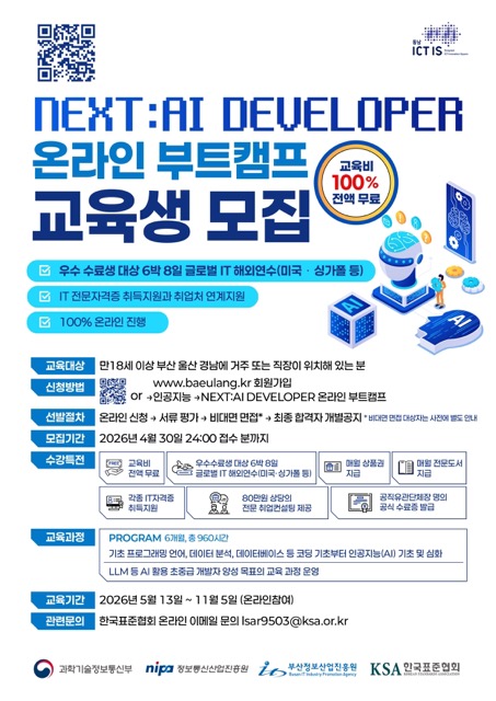 NEXT:AI DEVELOPER 온라인 부트캠프 NEXT AI, NEXT YOU 교육생 모집