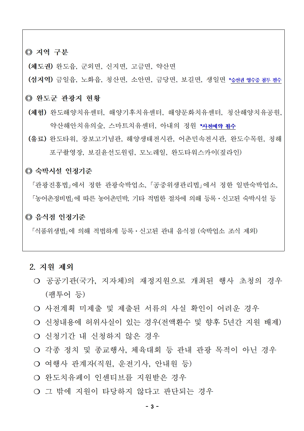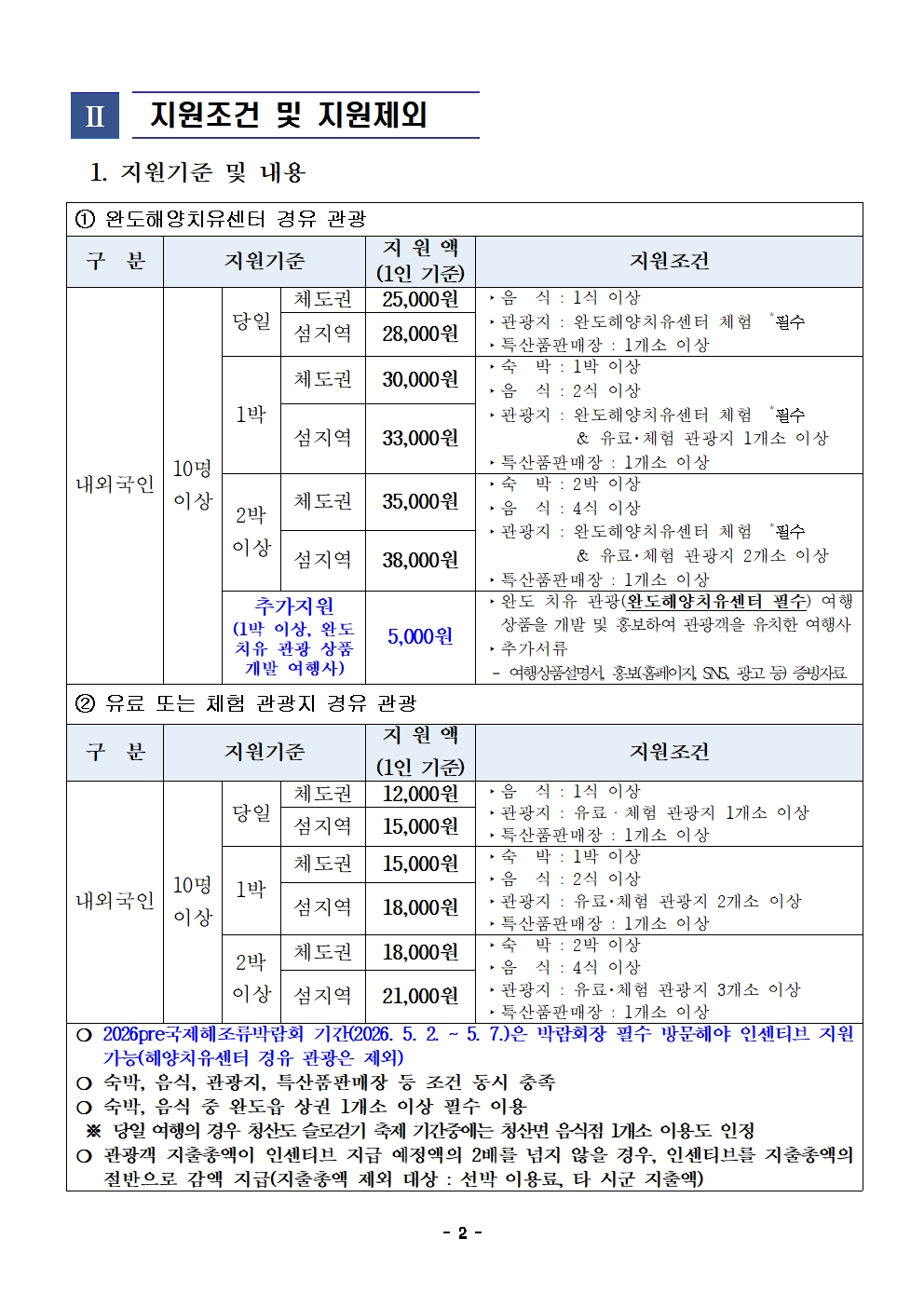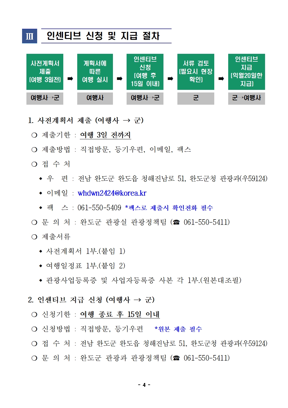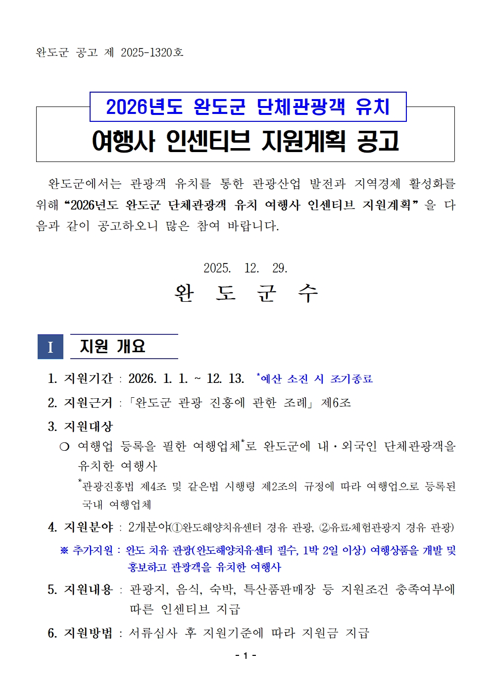 2026년 완도군 단체관광객 유치 여행사 인센티브 지원계획 공고