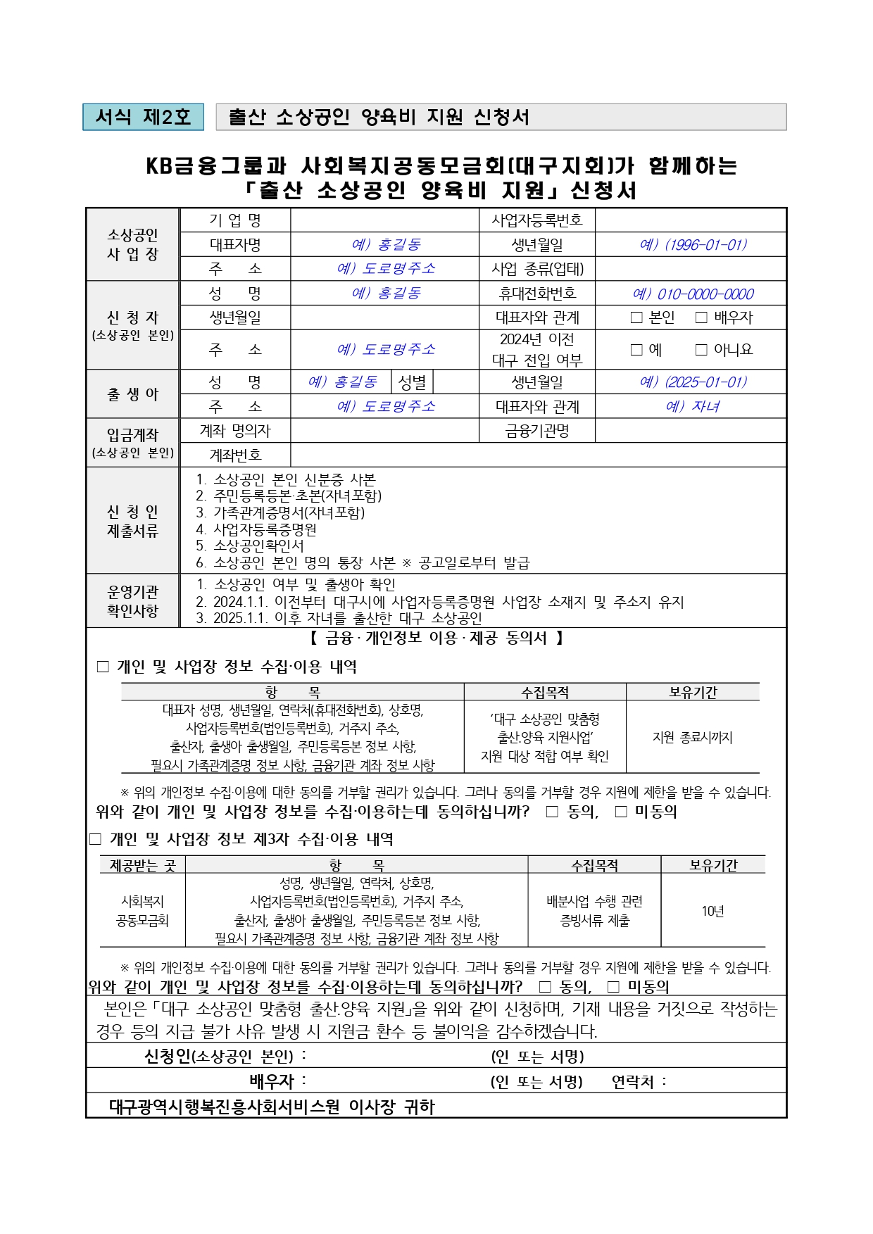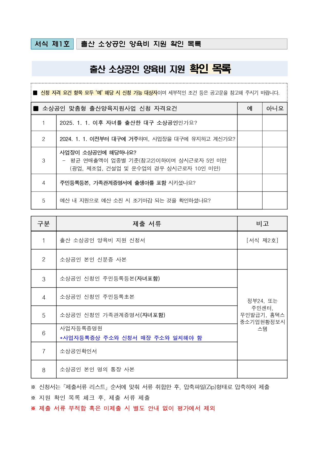 [대구] 2025년 4차 소상공인 맞춤형 출산ㆍ양육지원 사업 모집 공고