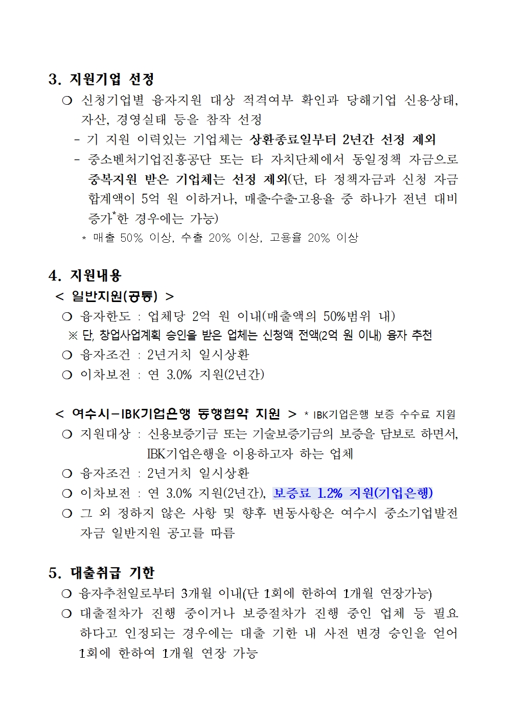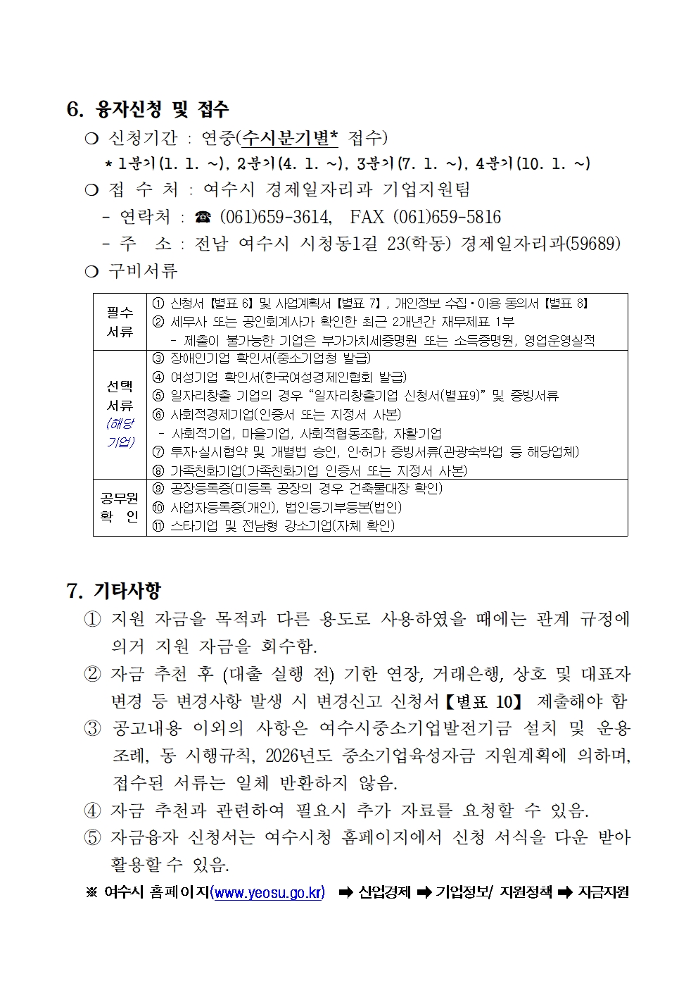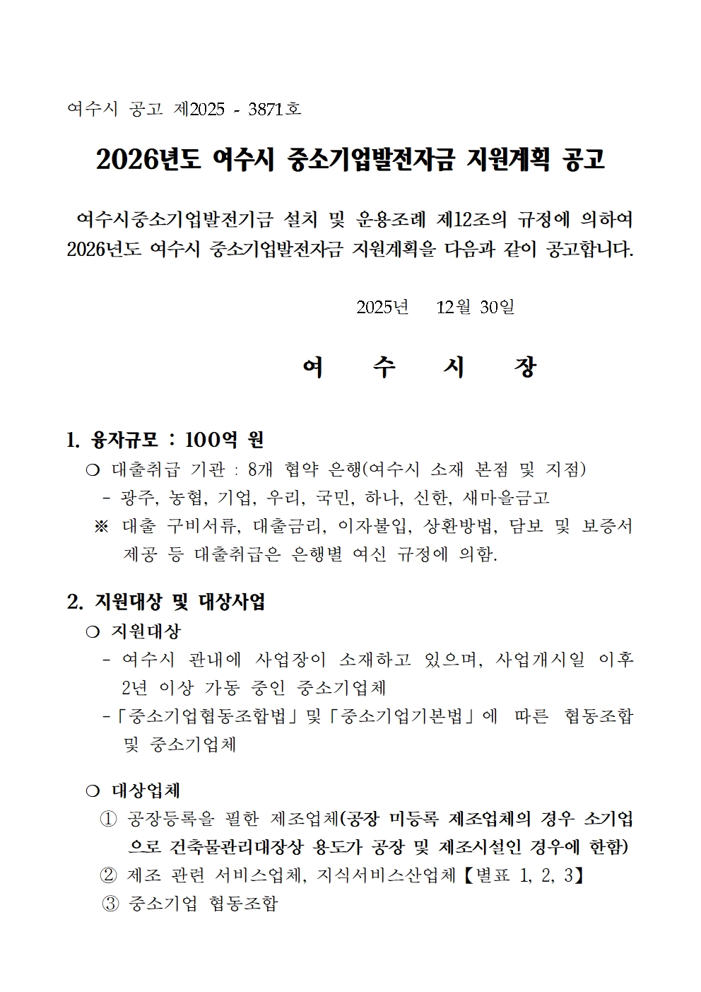 금융 [전남] 여수시 2026년 중소기업발전자금 지원계획 공고