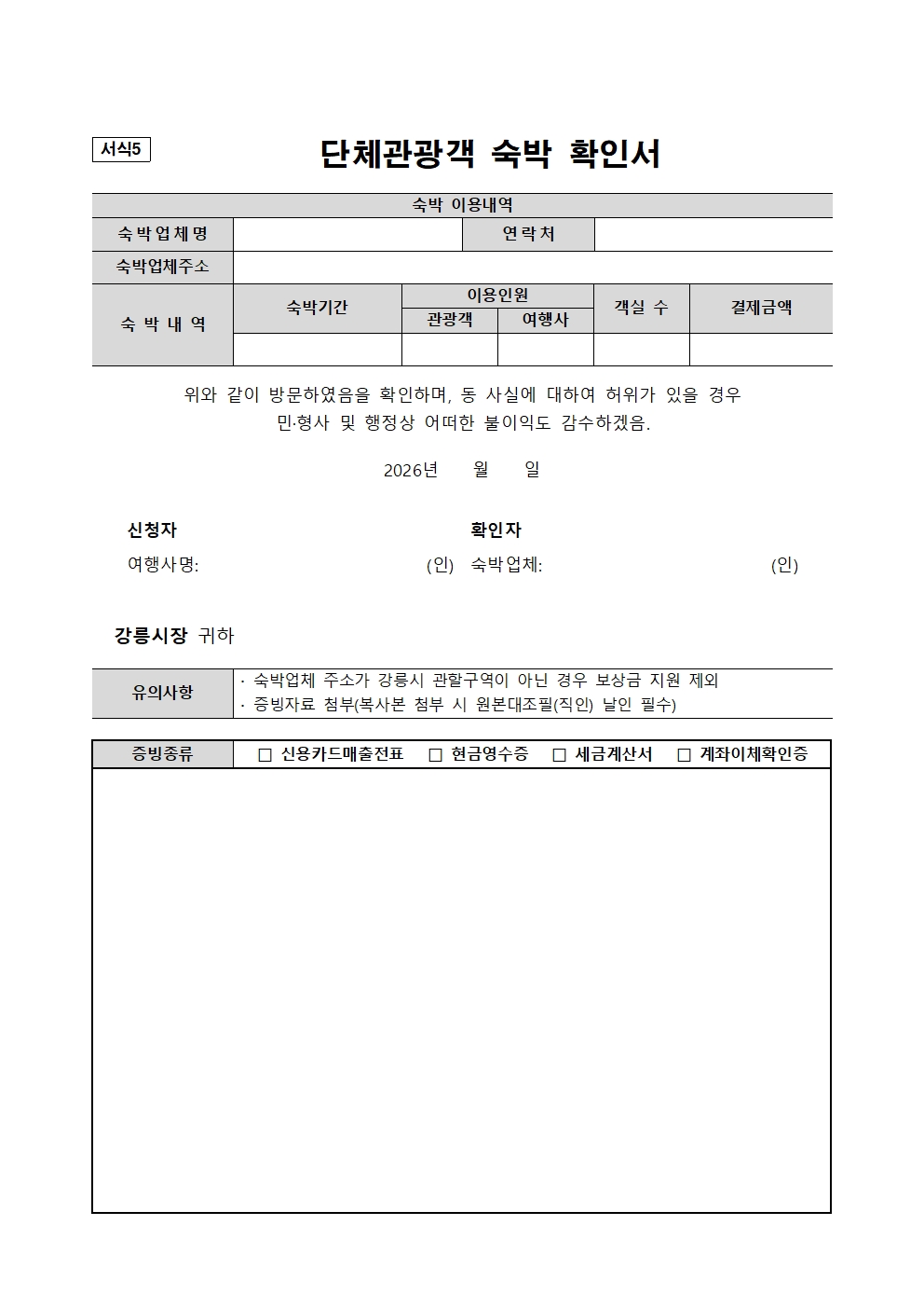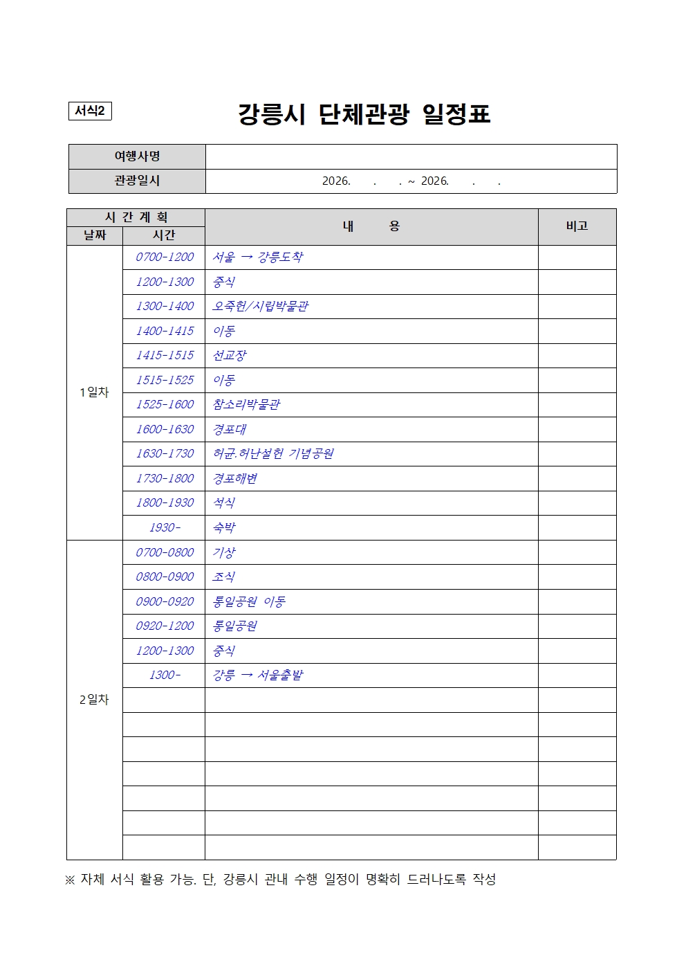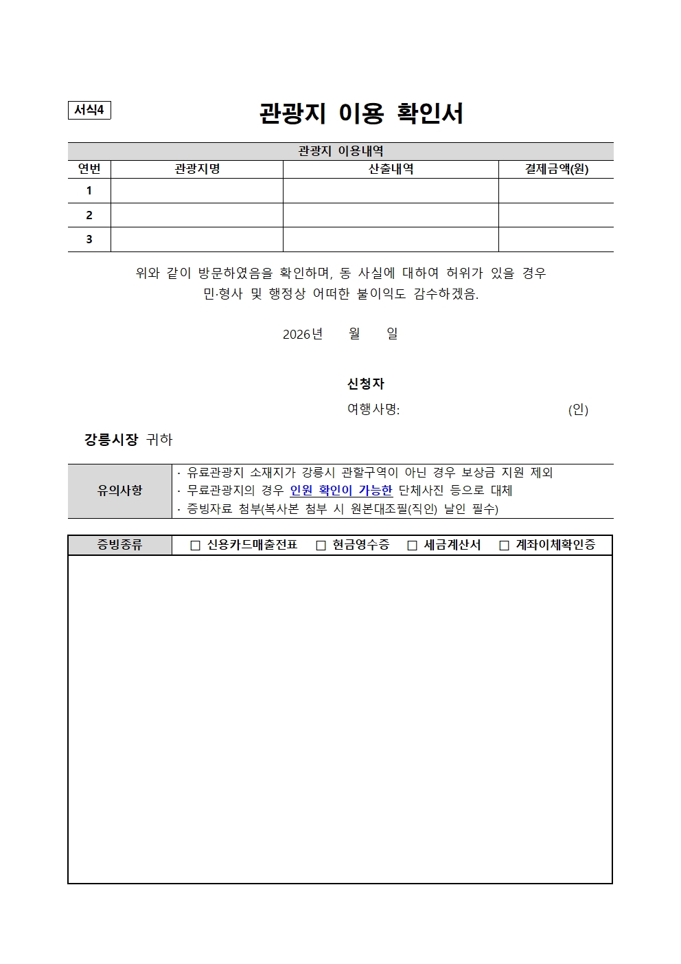 2026년 강릉시 단체관광객 유치 인센티브 지원계획 공고