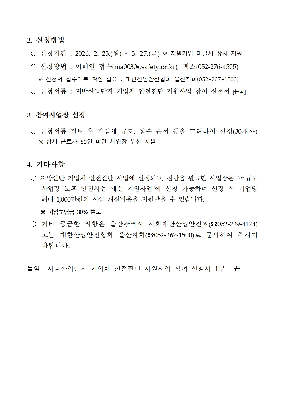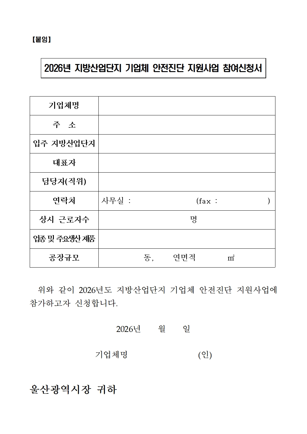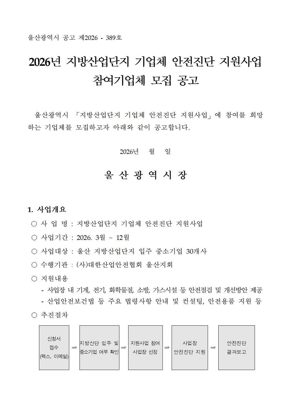 [울산] 2026년 지방산업단지 기업체 안전진단 지원사업 참여기업체 모집 공고
