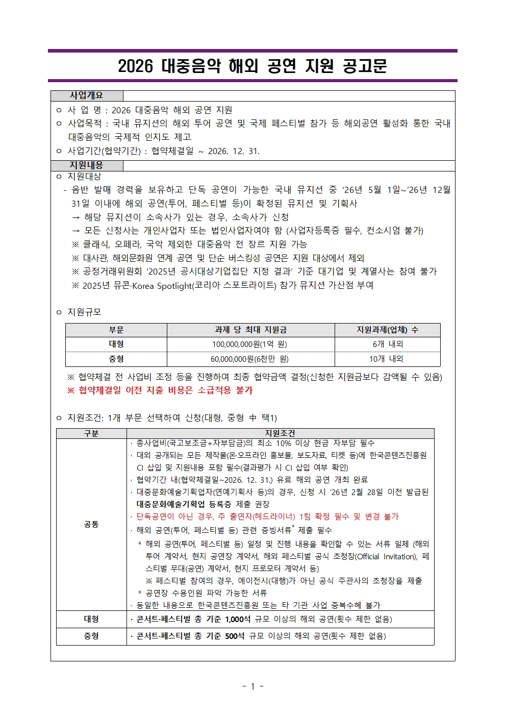 수출 2026년 대중음악 해외 공연 지원사업 공고