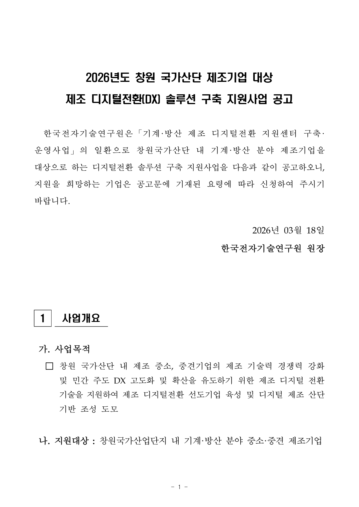기술 [경남] 창원시 2026년 국가산단 제조기업 대상 제조 디지털전환(DX) 솔루션 구축 지원사업 공고
