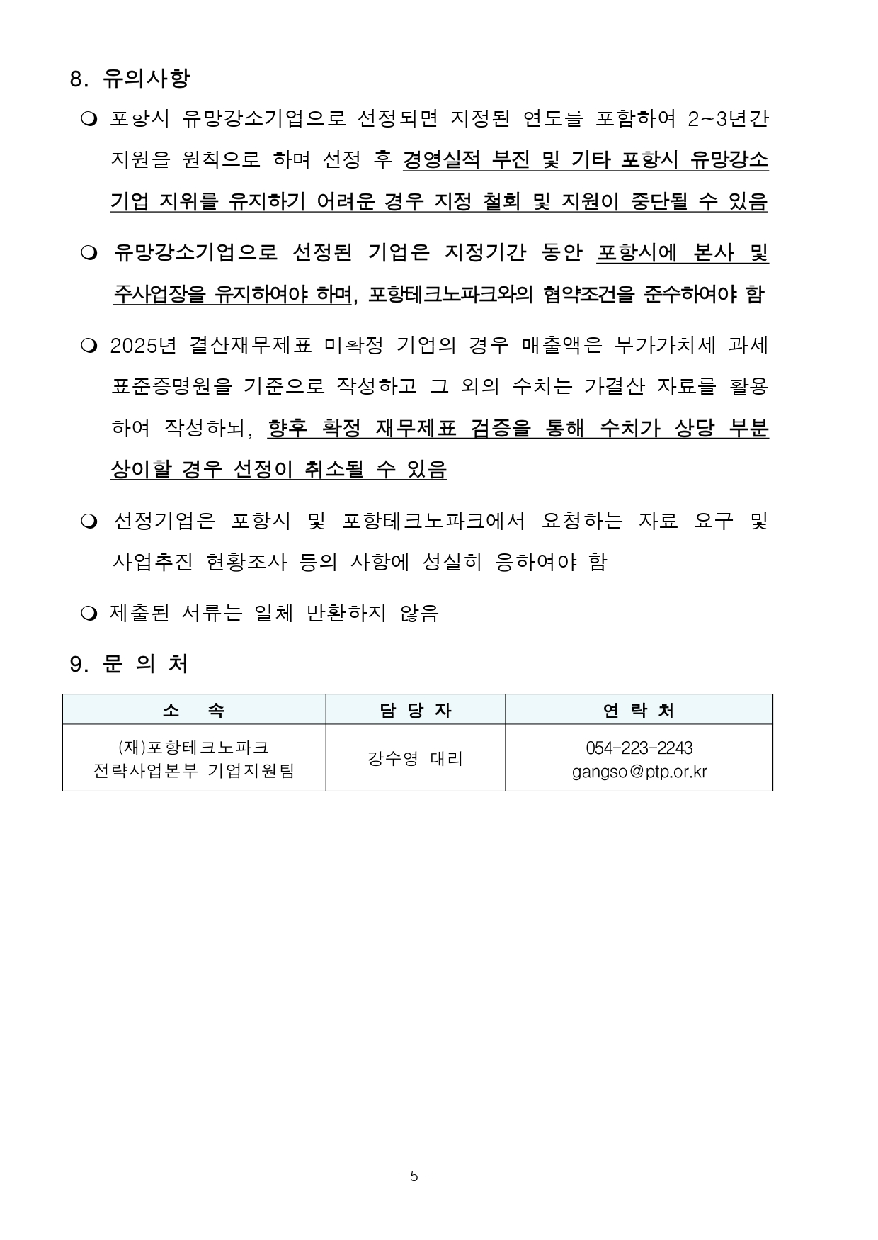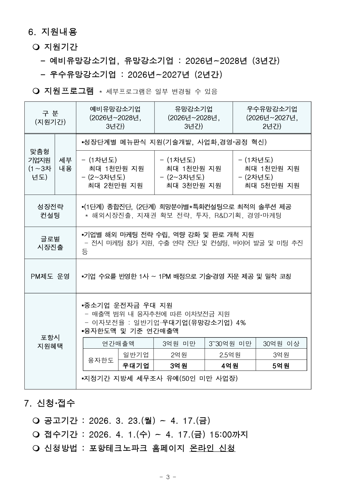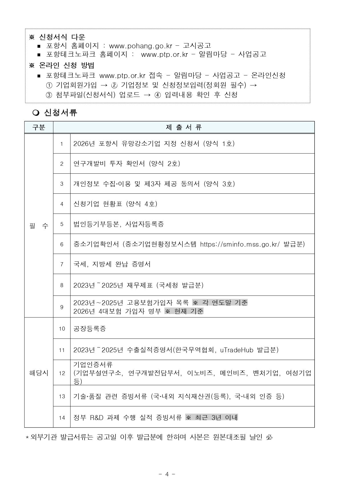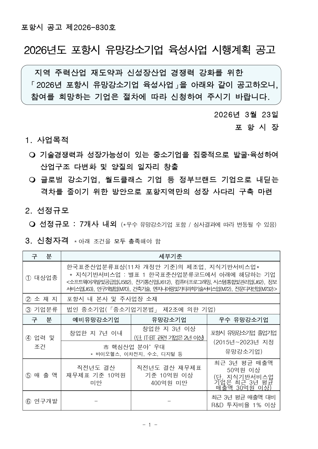 [경북] 2026년 포항시 유망강소기업 육성사업 시행계획 공고