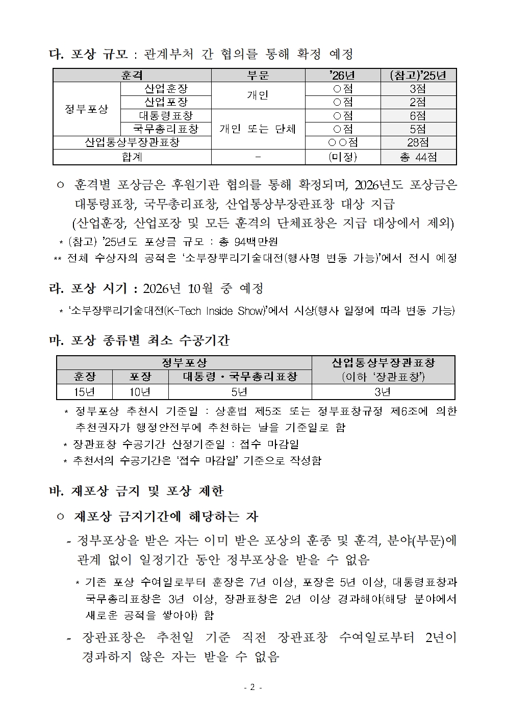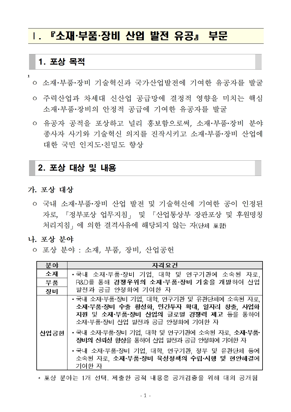 내수 2026년 소재ㆍ부품ㆍ장비-뿌리 산업 발전 유공 포상계획 공고