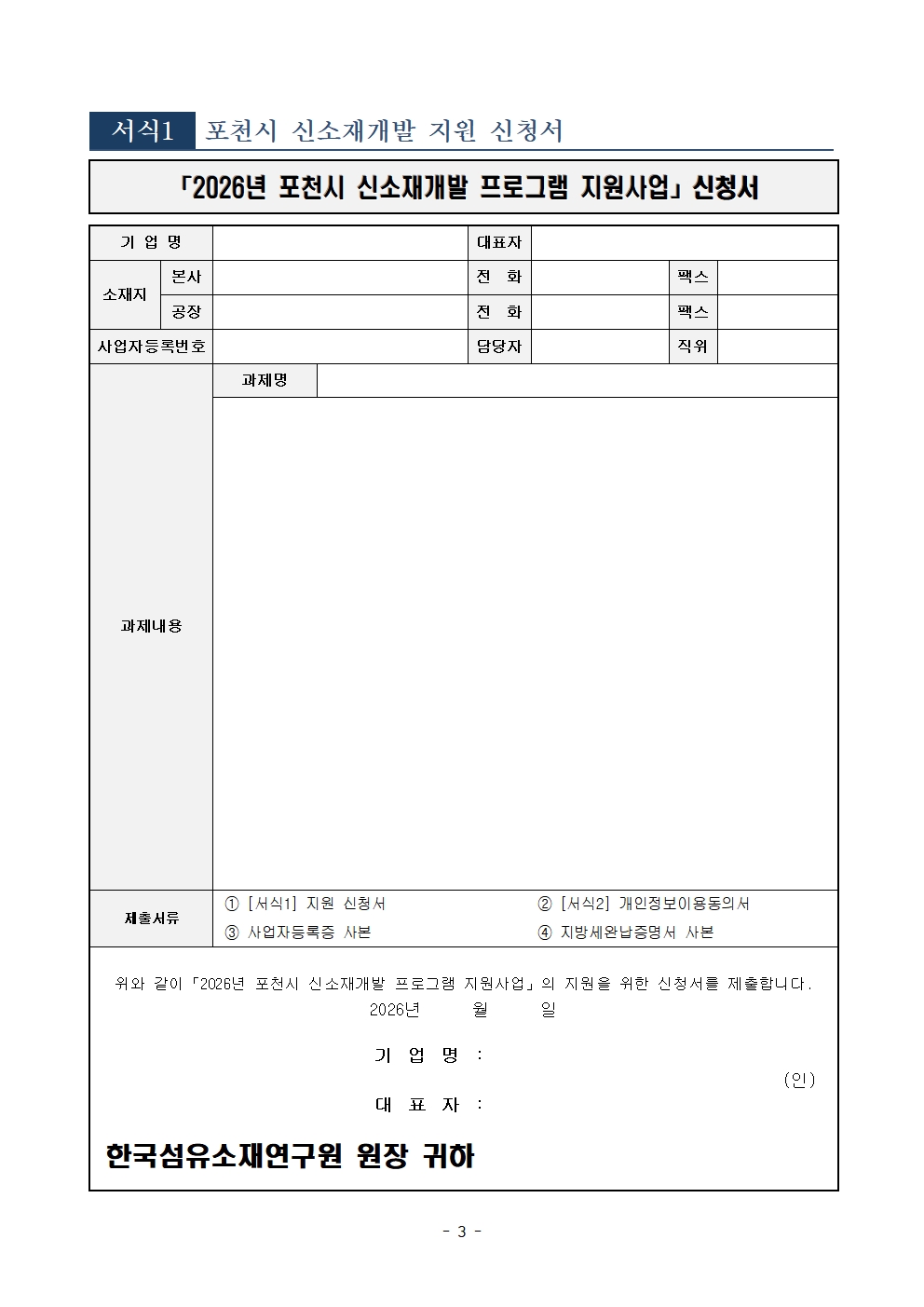 [경기] 포천시 2026년 신소재개발 프로그램 지원사업 모집 공고