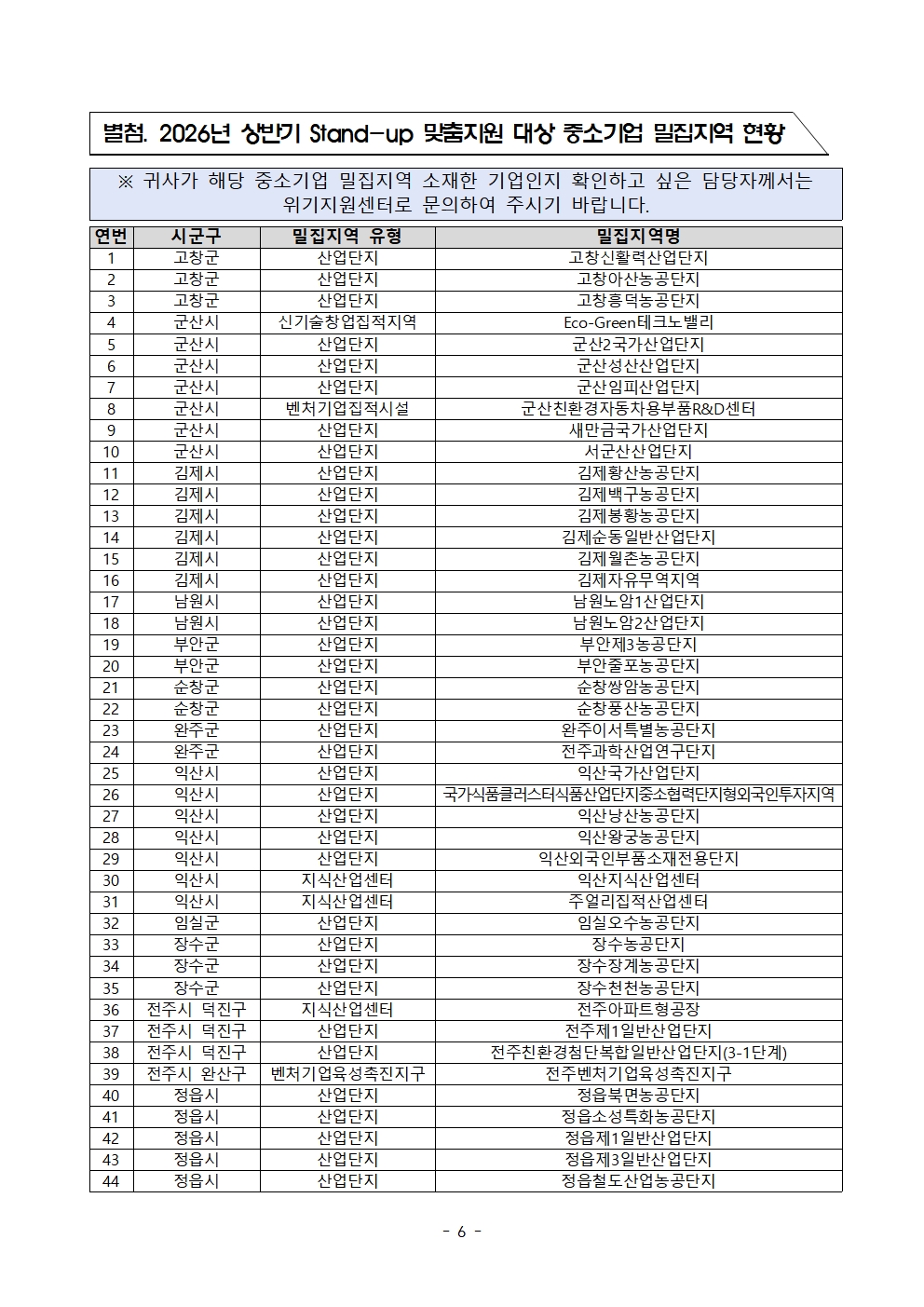 경영 [전북] 2026년 상반기 중소기업 밀집지역 위기대응 체계 구축사업 Stand-up 맞춤지원 모집 공고