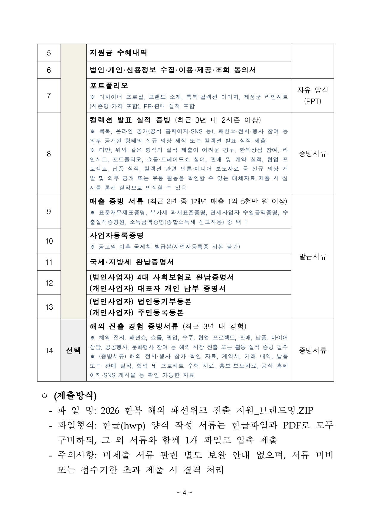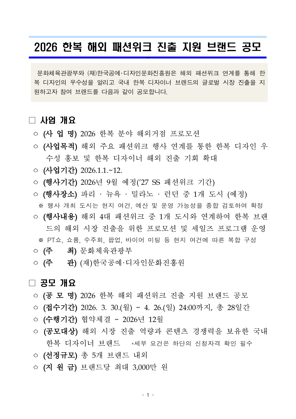 2026년 한복 해외 패션위크 진출 지원 브랜드 공고