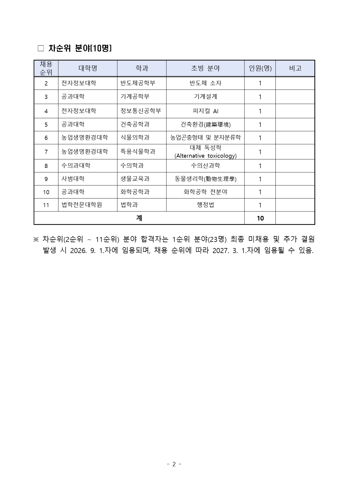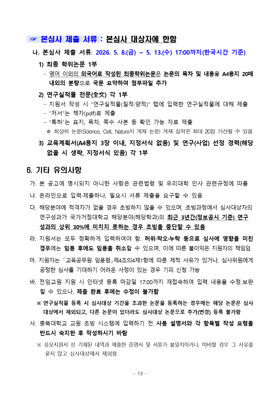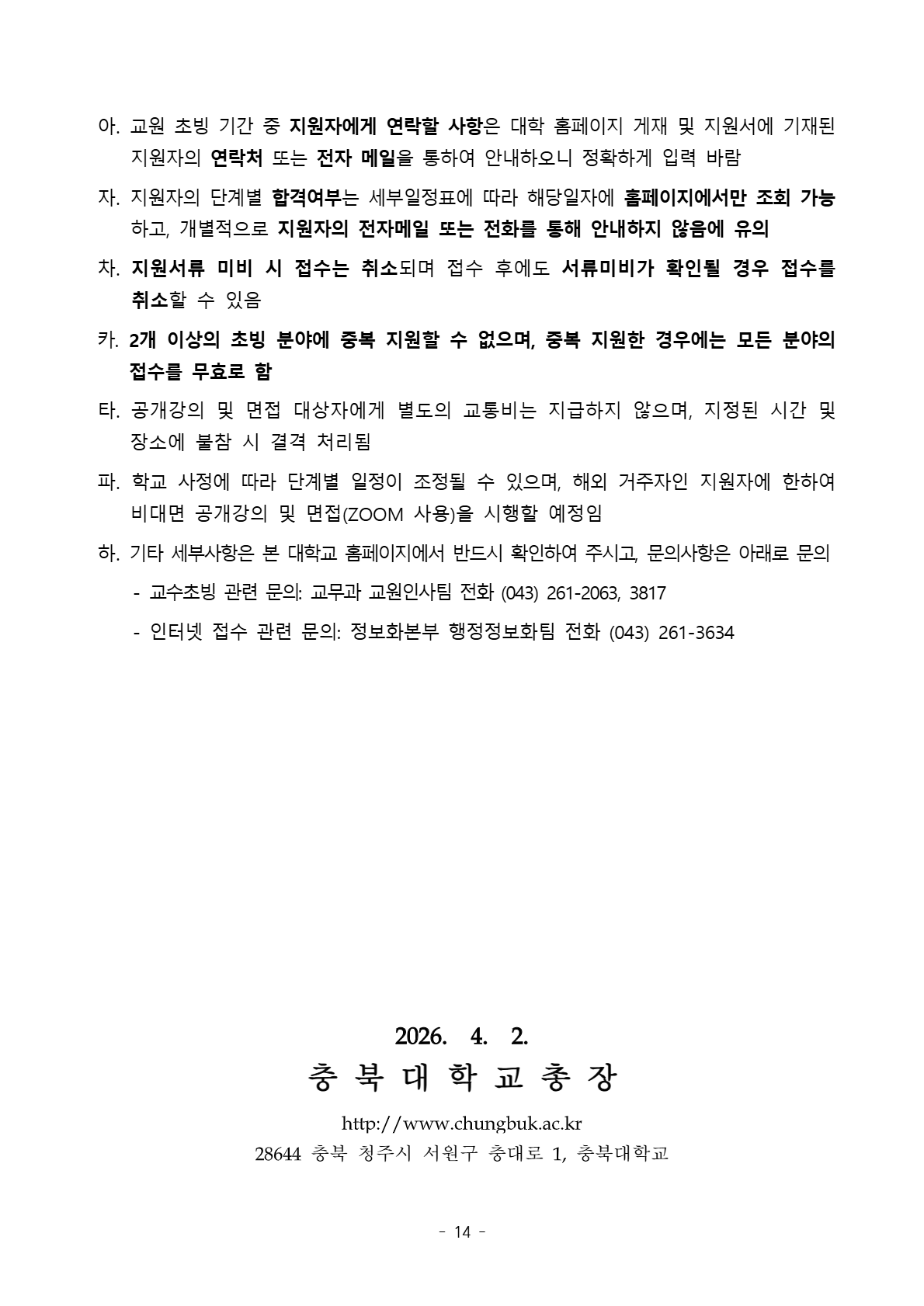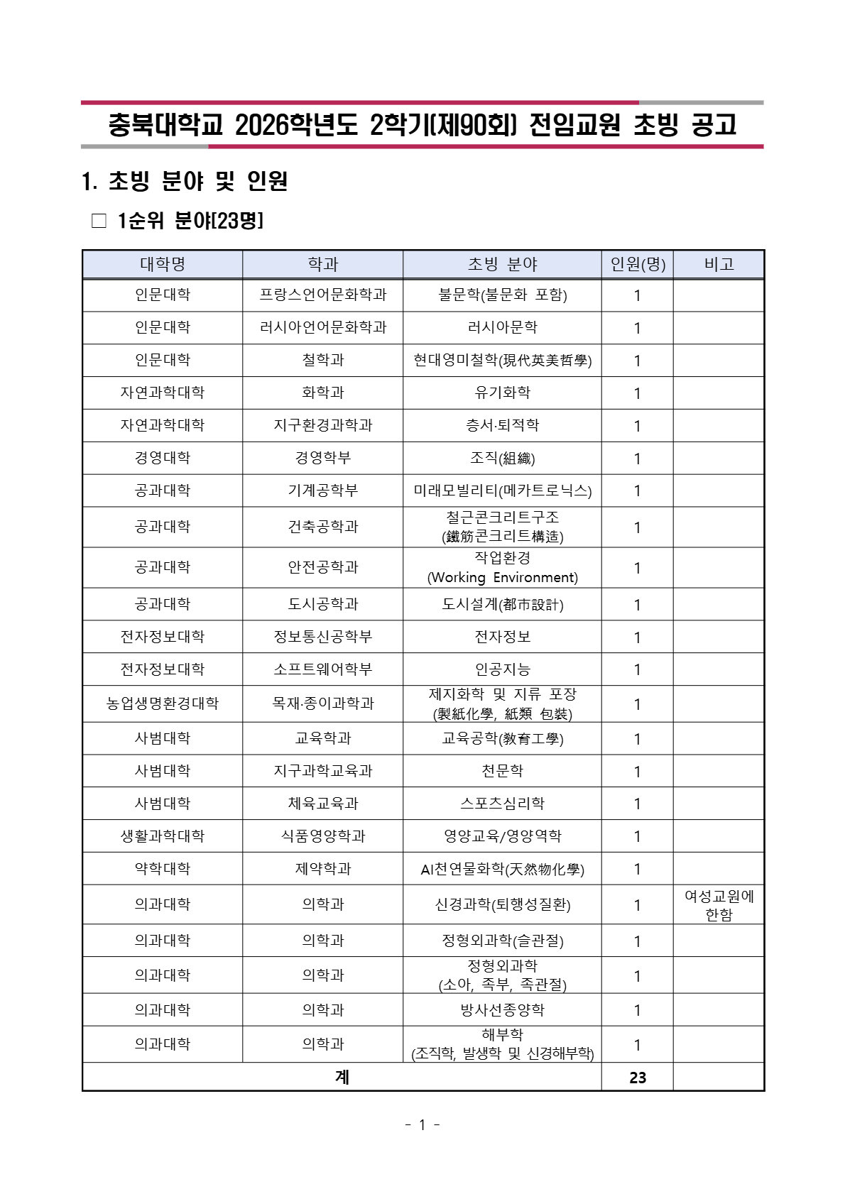 충북대학교 2026학년도 2학기 전임교원 초빙