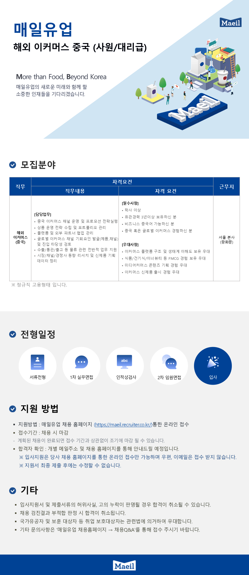 | 본사 해외 이커머스 중국 (사원/대리급) | 경영·사무·금융·보험 | <부문별 세부사항 공고 참조> | - |