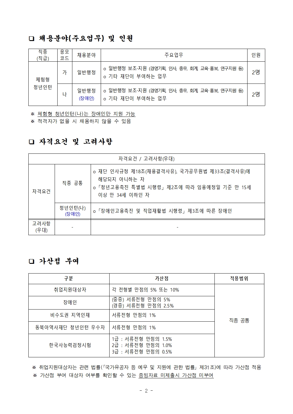 청년인턴 공개채용 (장애인 구분모집 포함)