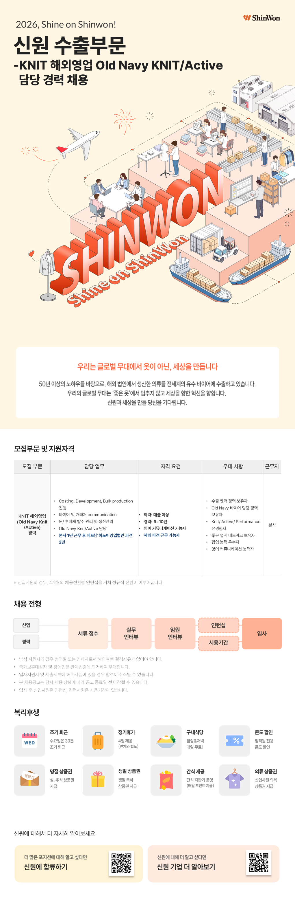수출부문 KNIT 해외영업 Old Navy Knit/Active 담당 경력 채용