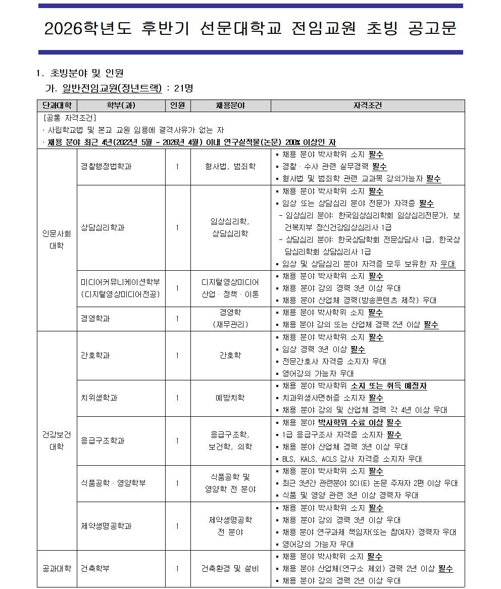 채용정보는 공고 마감 1년 후 부터는 열람이 제한되니 공고내용이 필요한 회원은 사전에 출력 바랍니다.