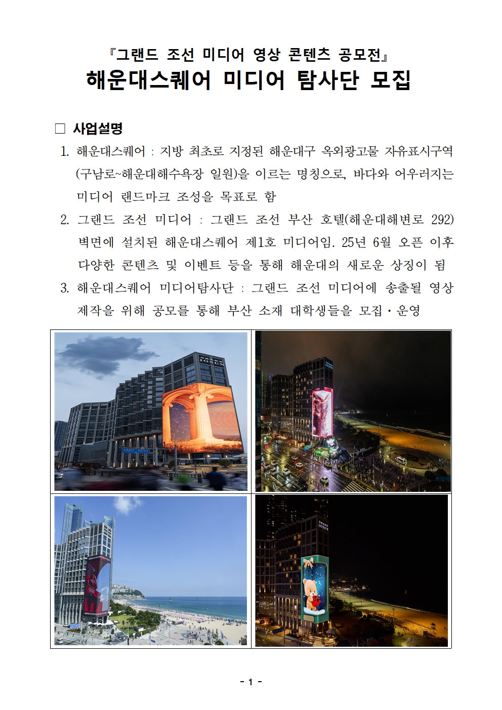 | 영상/UCC/사진 | 대학원 포함 부산시 소재 대학 재학중인 학생 개인 또는 팀(4인 이내) |