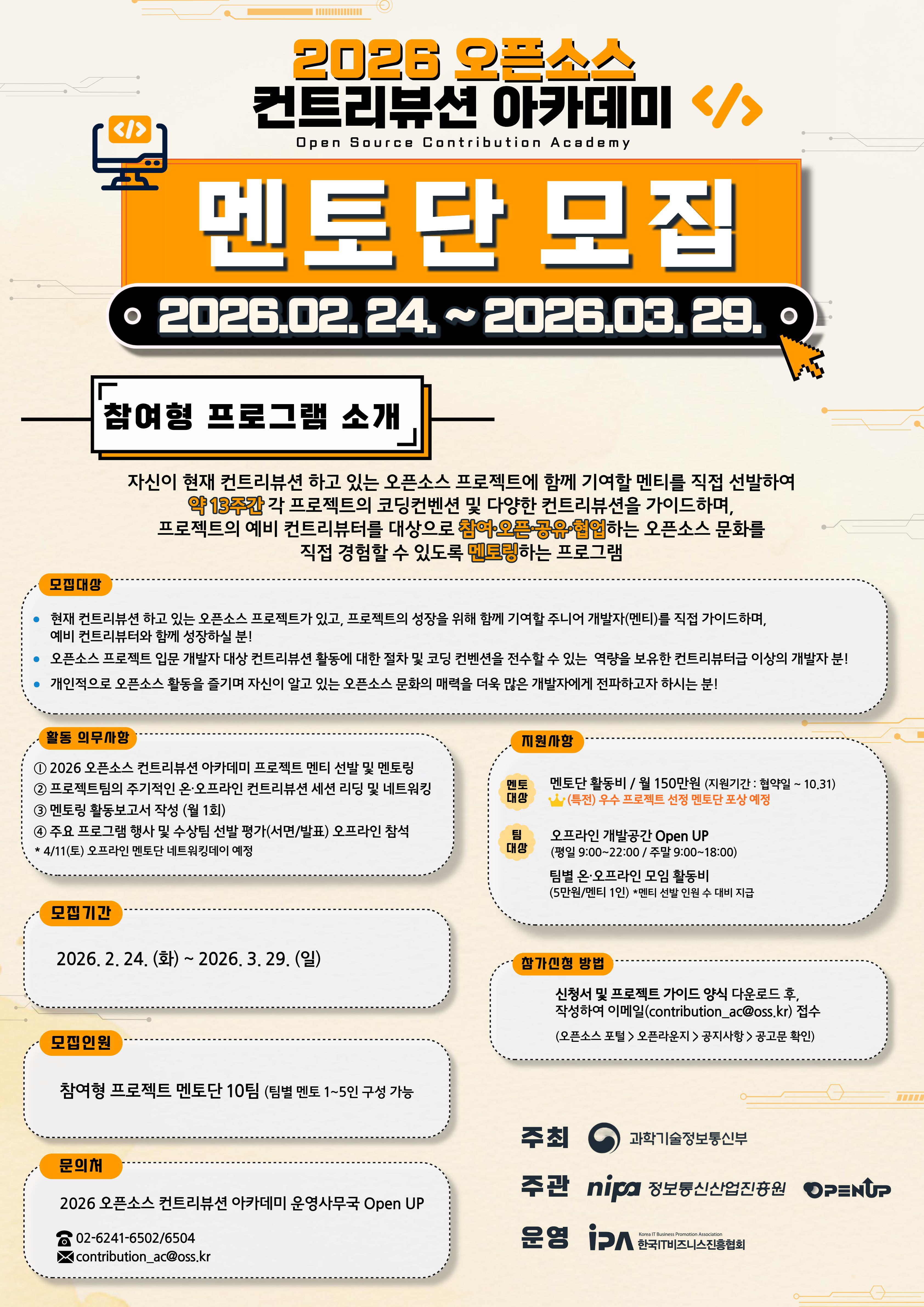 (Open UP) '26년도 오픈소스 컨트리뷰션 아카데미 참여형 멘토단 모집