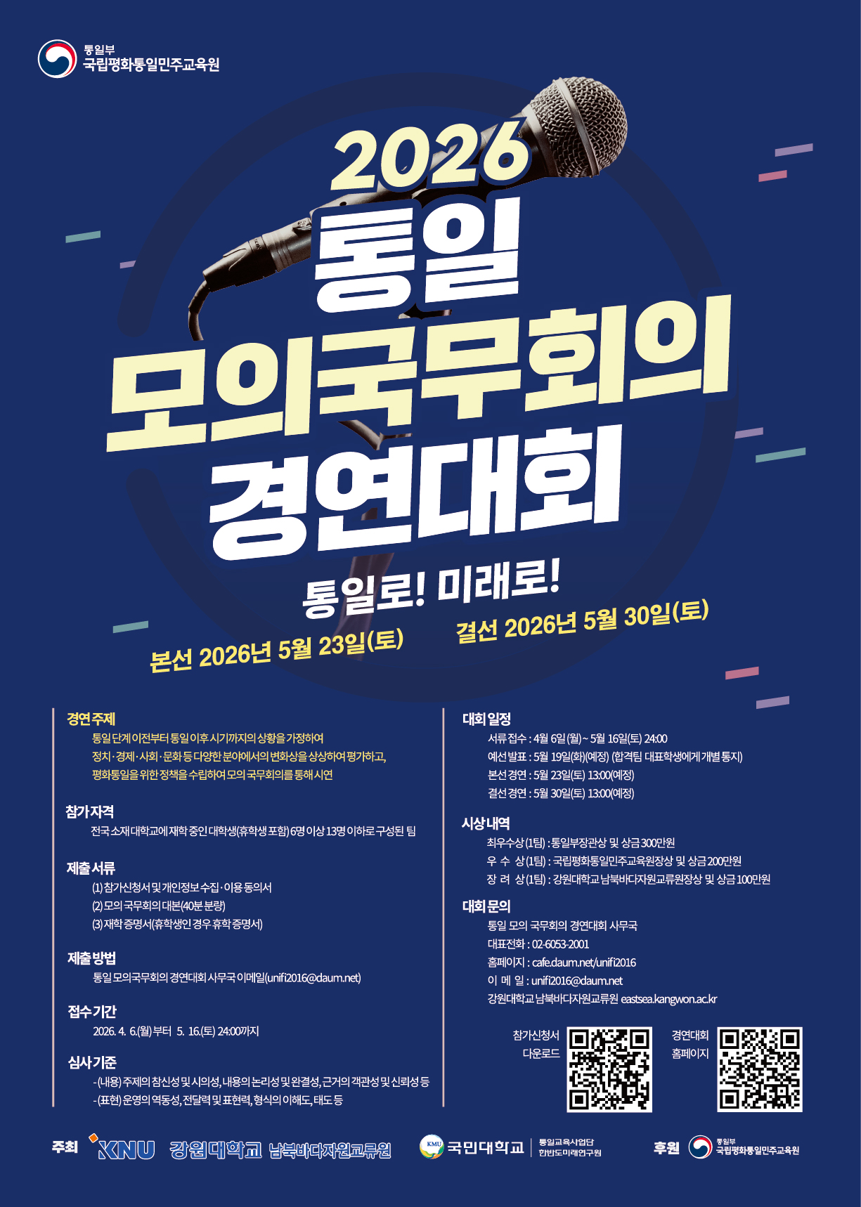| 최우수상 | 1명 | 통일부장관상 및 상금 3백만원 |