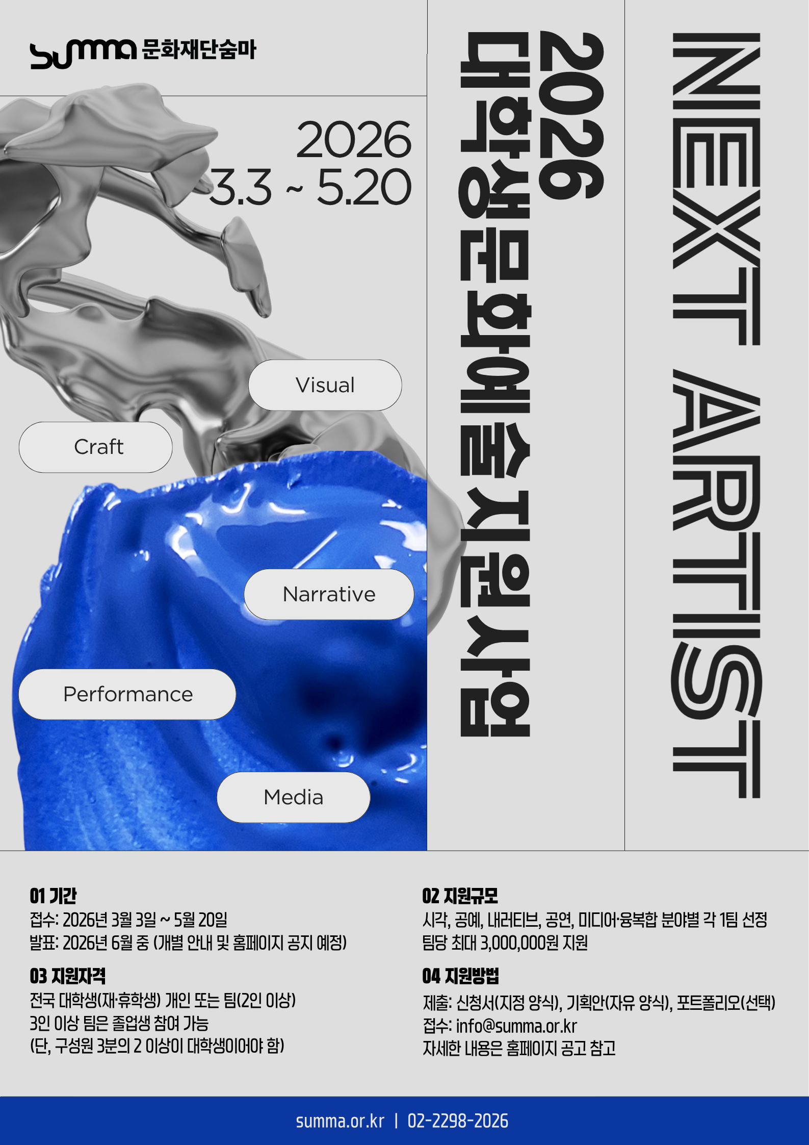 2026 대학생 문화예술 지원 사업 NEXT ARTIST